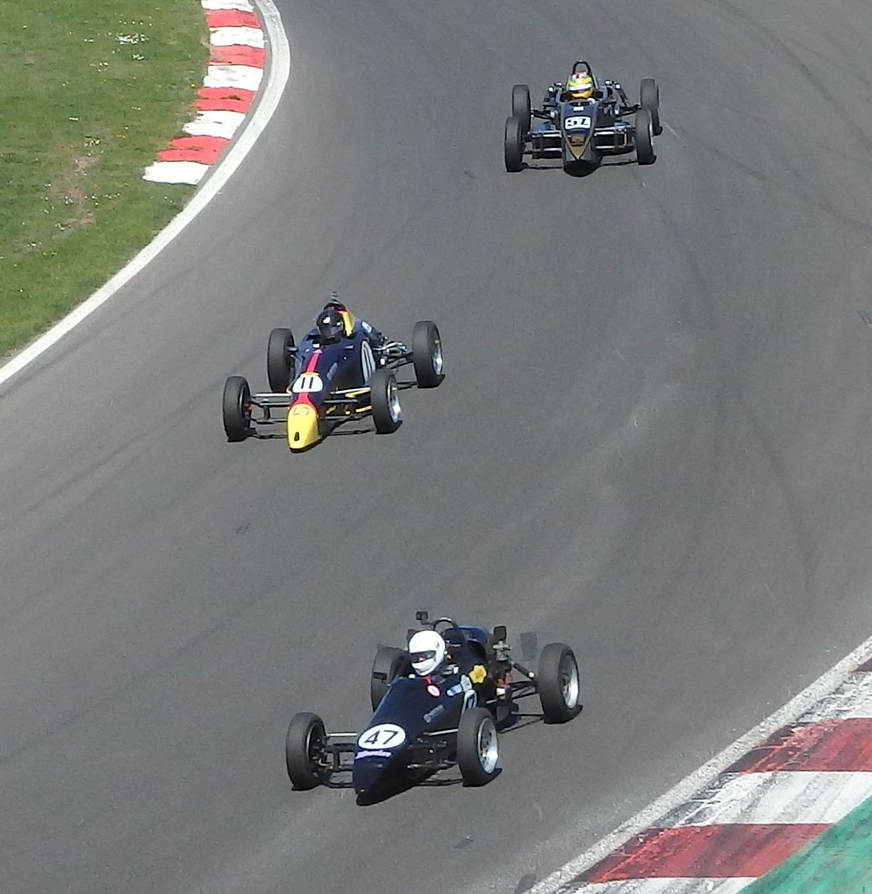Actually, not a bad start. Clean first corner and a couple of places up – critically ahead of the other TJT cars who make much better starts than me. A good lunge inside Graham Hill bend gets me another place and we start to get into a rhythm.