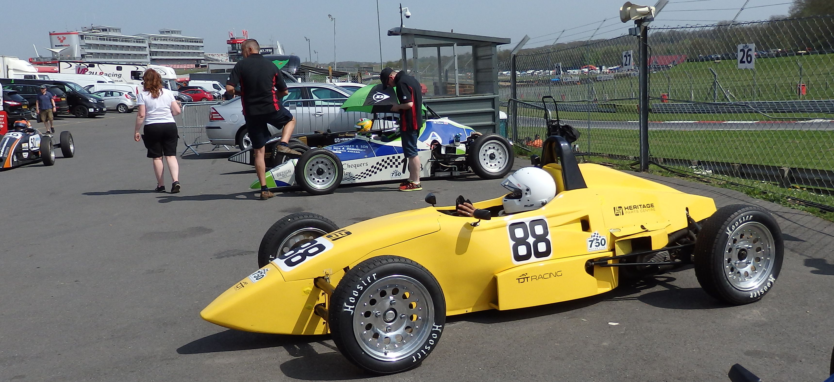 The weather for the race weekend was simply gorgeous, the kind of weather you just want to sit in the garden and have some beers along with a tasty BBQ. Slightly too warm for optimum Formula Vee engine running (the engines being air cooled in nature), and also not so nice when sitting in the collecting area with a full race suit on, helmet and gloves.