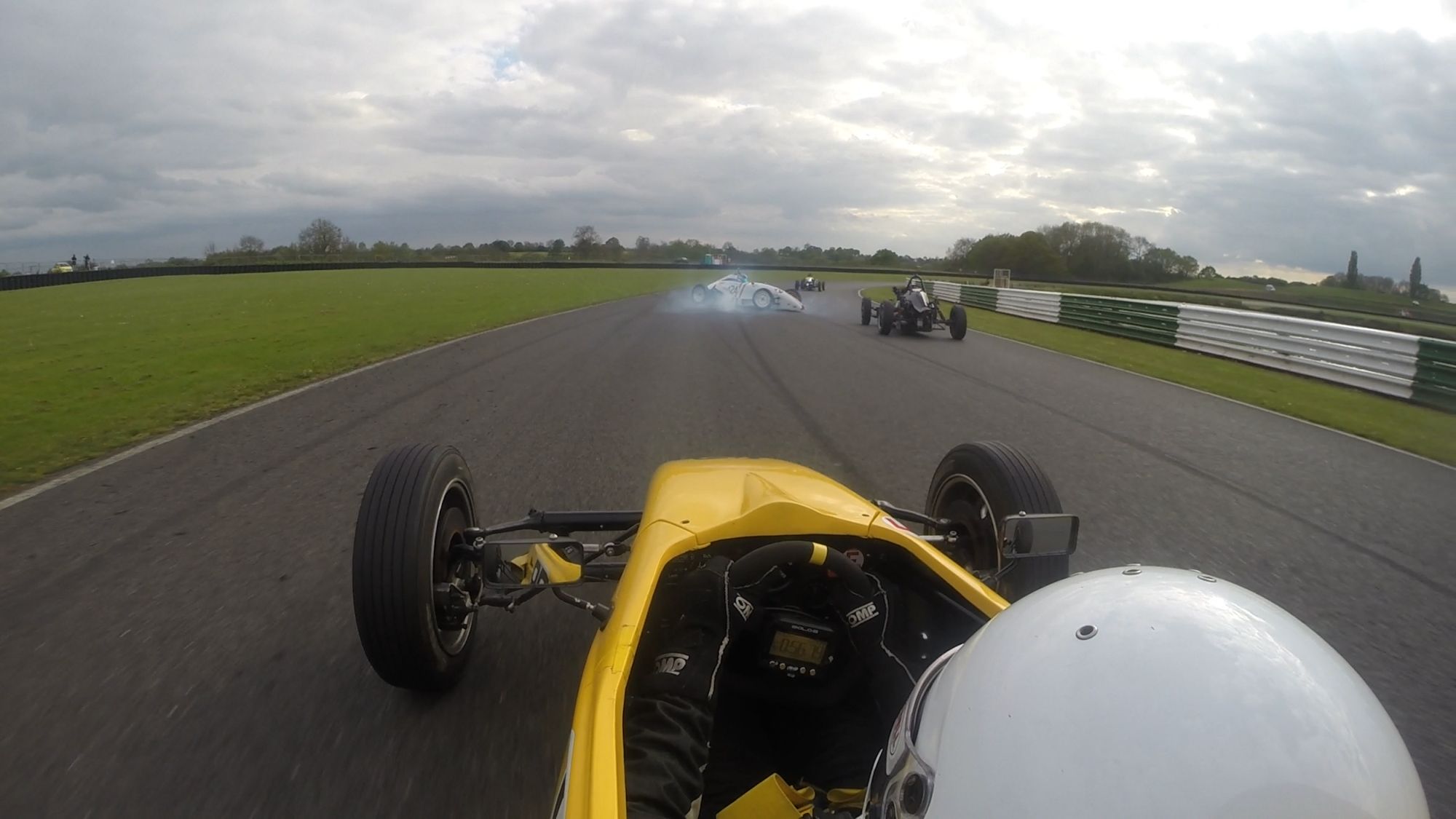 Thankfully no major damage done as the nose cone had a gentle kiss with the barriers. Accident avoidance is now becoming a speciality – this felt like Brands Hatch all over again.